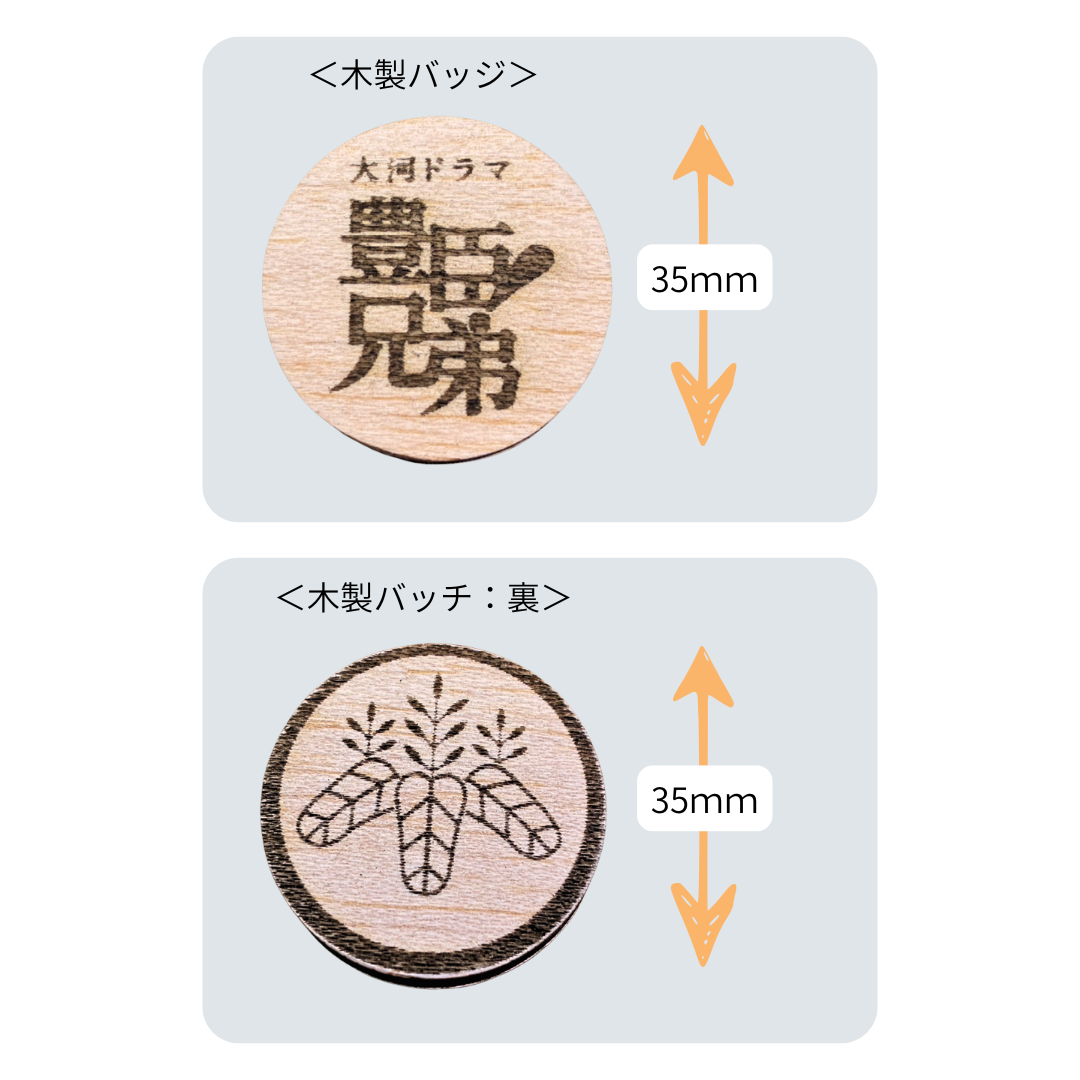 豊臣兄弟!木製バッチ 内部にマグネットを入れているので、冷蔵庫などに貼り付けて使ってください。
